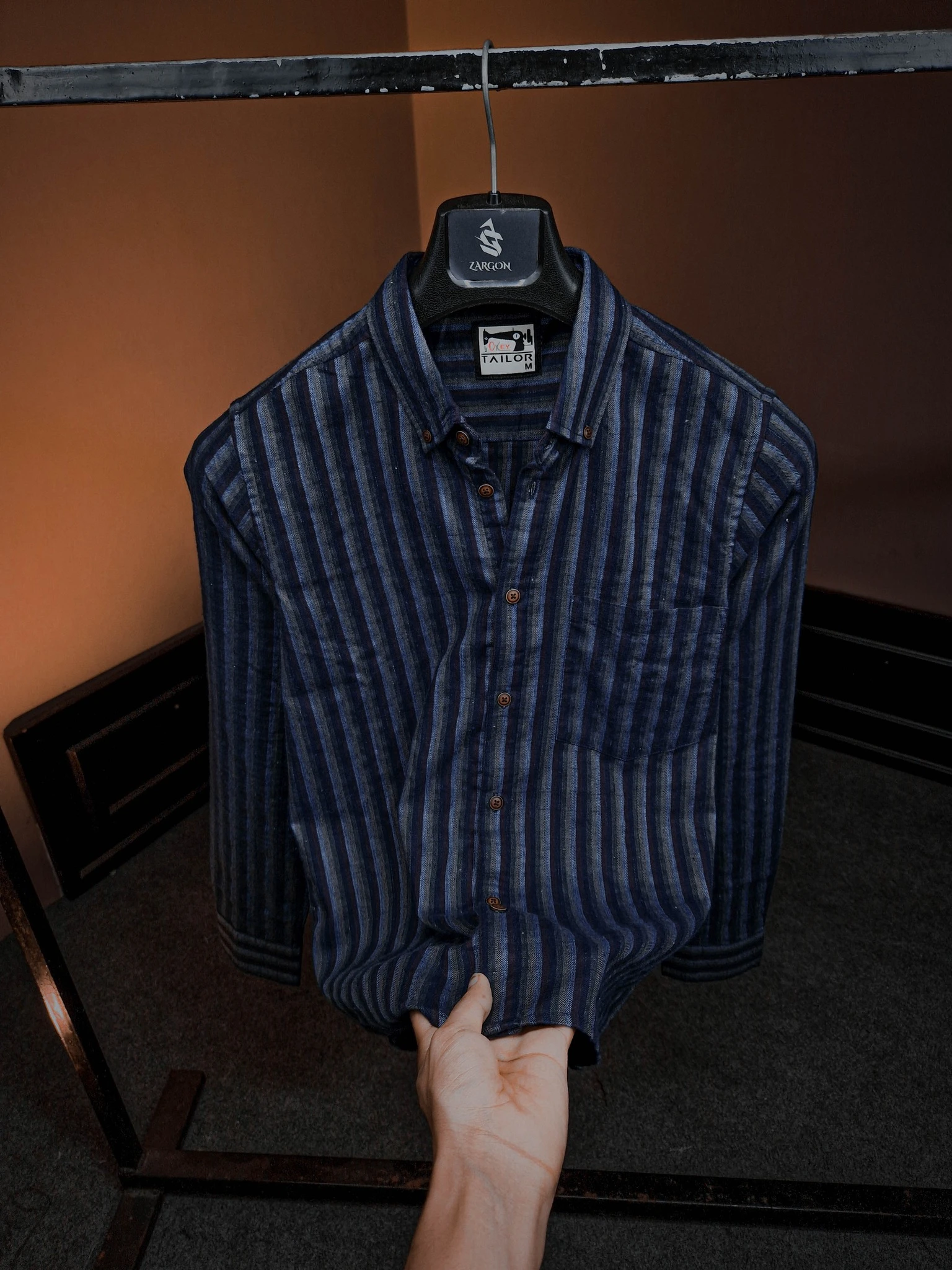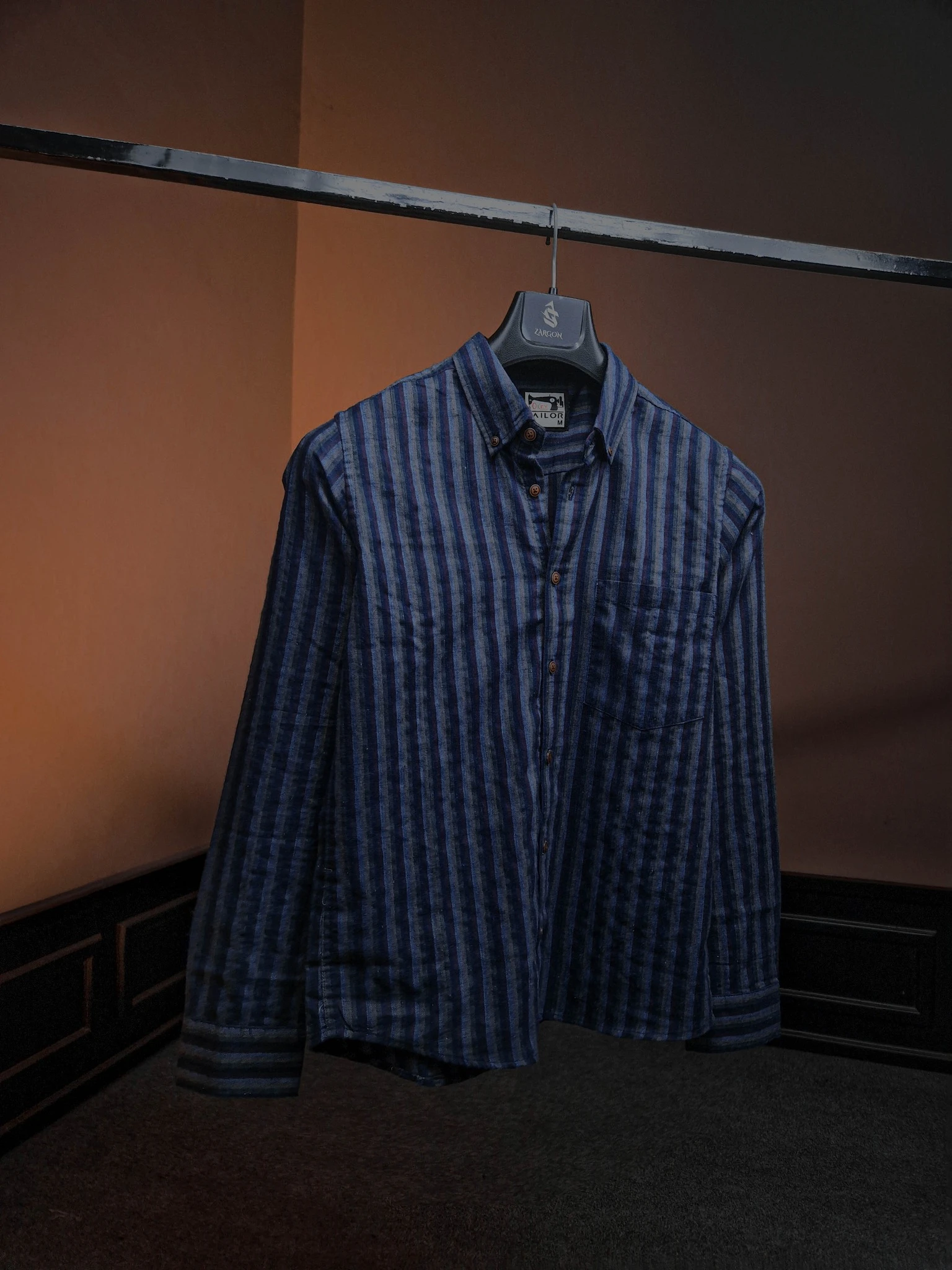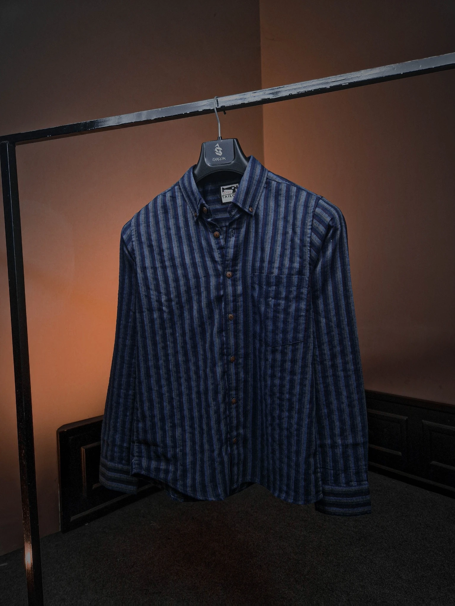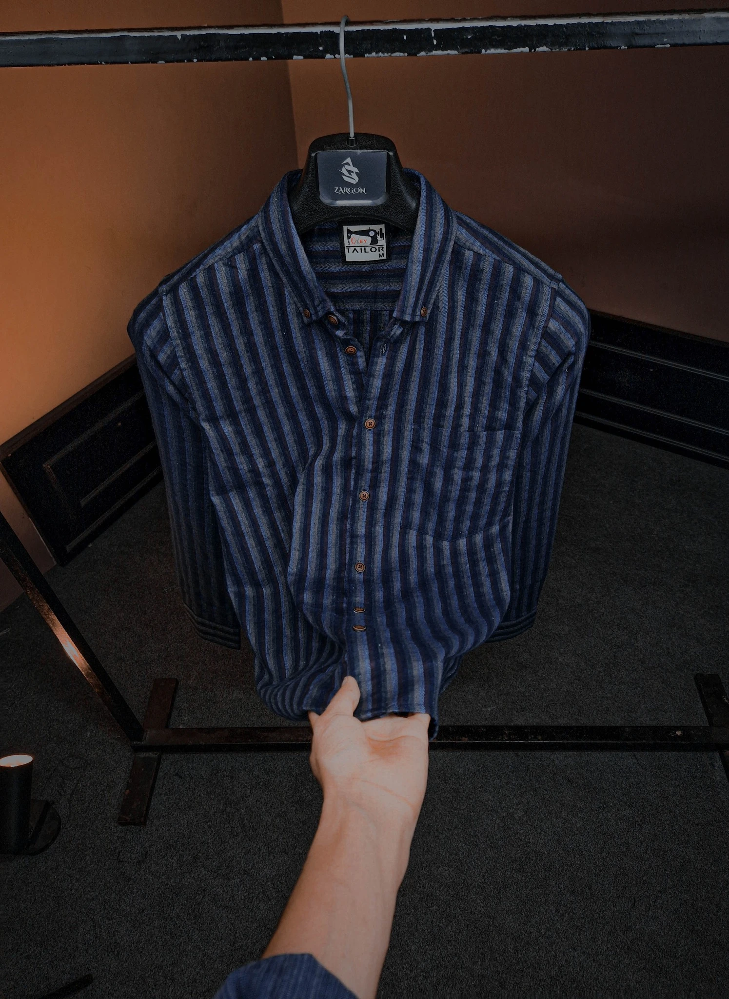 The Dark Navy Blue with Grey Vertical Stripes from .Okey Tailor brings a perfect balance of boldness and sophistication. Made from premium cotton fabric, it ensures breathability and comfort for all-day wear. The vibrant mix of blue, yellow, and maroon stripes adds a touch of modern flair to your casual or semi-formal look. Whether you’re heading to a weekend outing or a smart-casual event, this stylish shirt from Okey Tailor is a standout choice for men’s fashion in Bangladesh.