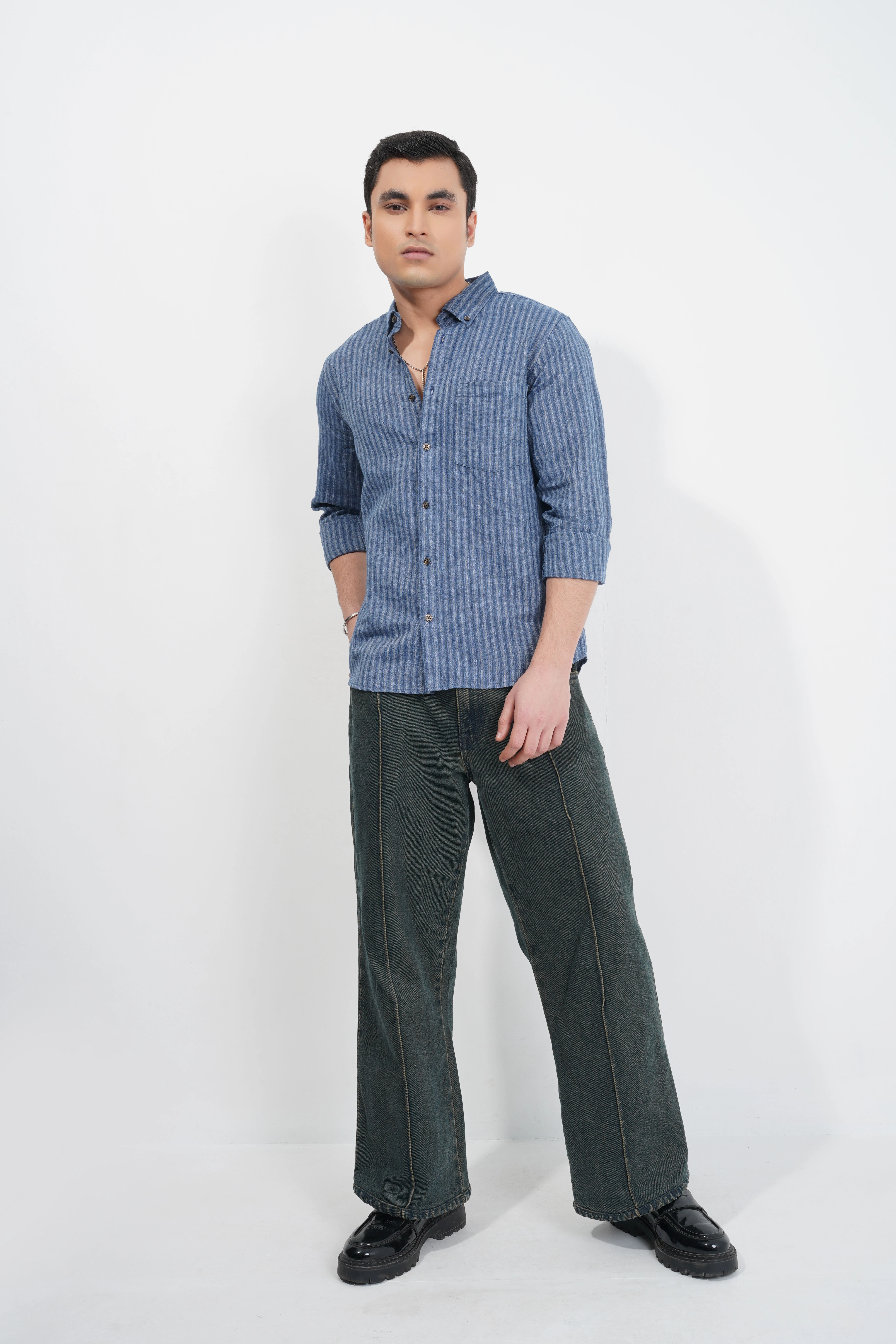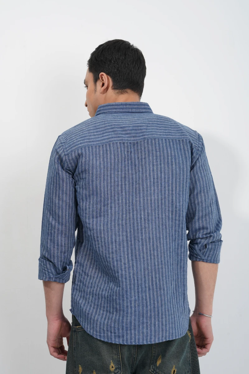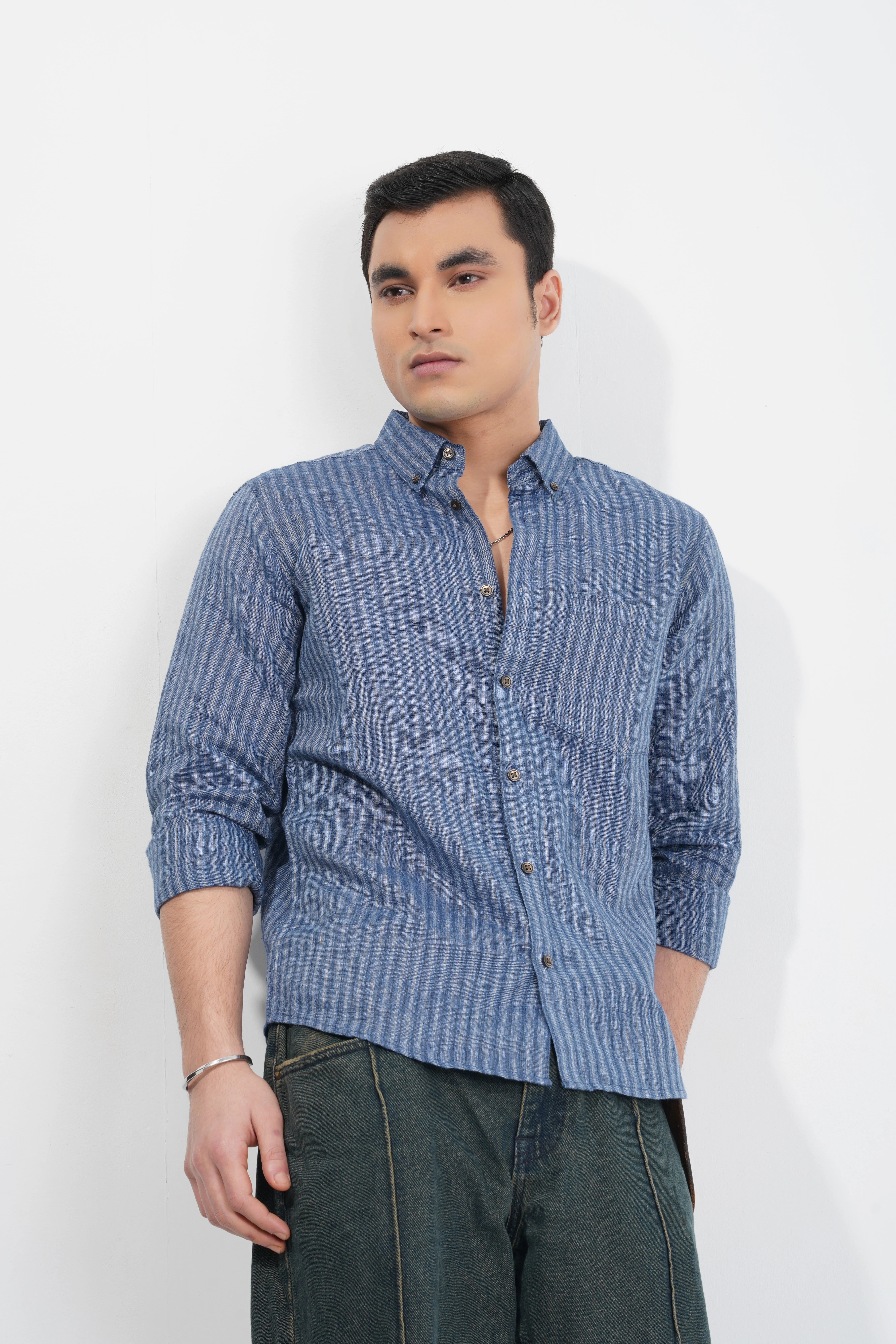 The Dusty denim blue with thin white vertical pinstripes from Okey Tailor brings a perfect balance of boldness and sophistication. Made from premium cotton fabric, it ensures breathability and comfort for all-day wear. The vibrant mix of blue, yellow, and maroon stripes adds a touch of modern flair to your casual or semi-formal look. Whether you’re heading to a weekend outing or a smart-casual event, this stylish shirt from Okey Tailor is a standout choice for men’s fashion in Bangladesh.