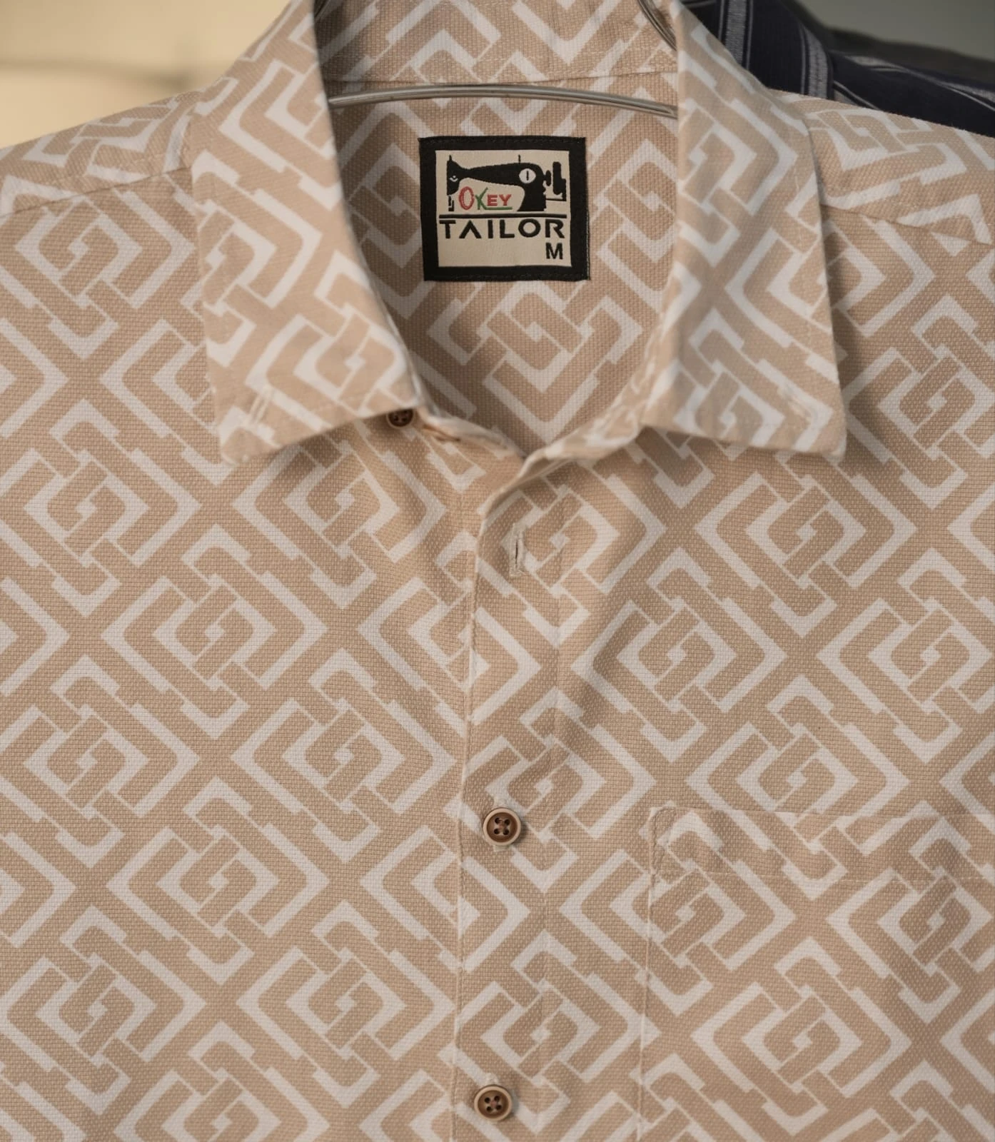The Light Beige -Off white With Subtle Geometric Pattern from Okey Tailor brings a perfect balance of boldness and sophistication. Made from premium cotton fabric, it ensures breathability and comfort for all-day wear. The vibrant mix of blue, yellow, and maroon stripes adds a touch of modern flair to your casual or semi-formal look. Whether you’re heading to a weekend outing or a smart-casual event, this stylish shirt from Okey Tailor is a standout choice for men’s fashion in Bangladesh.