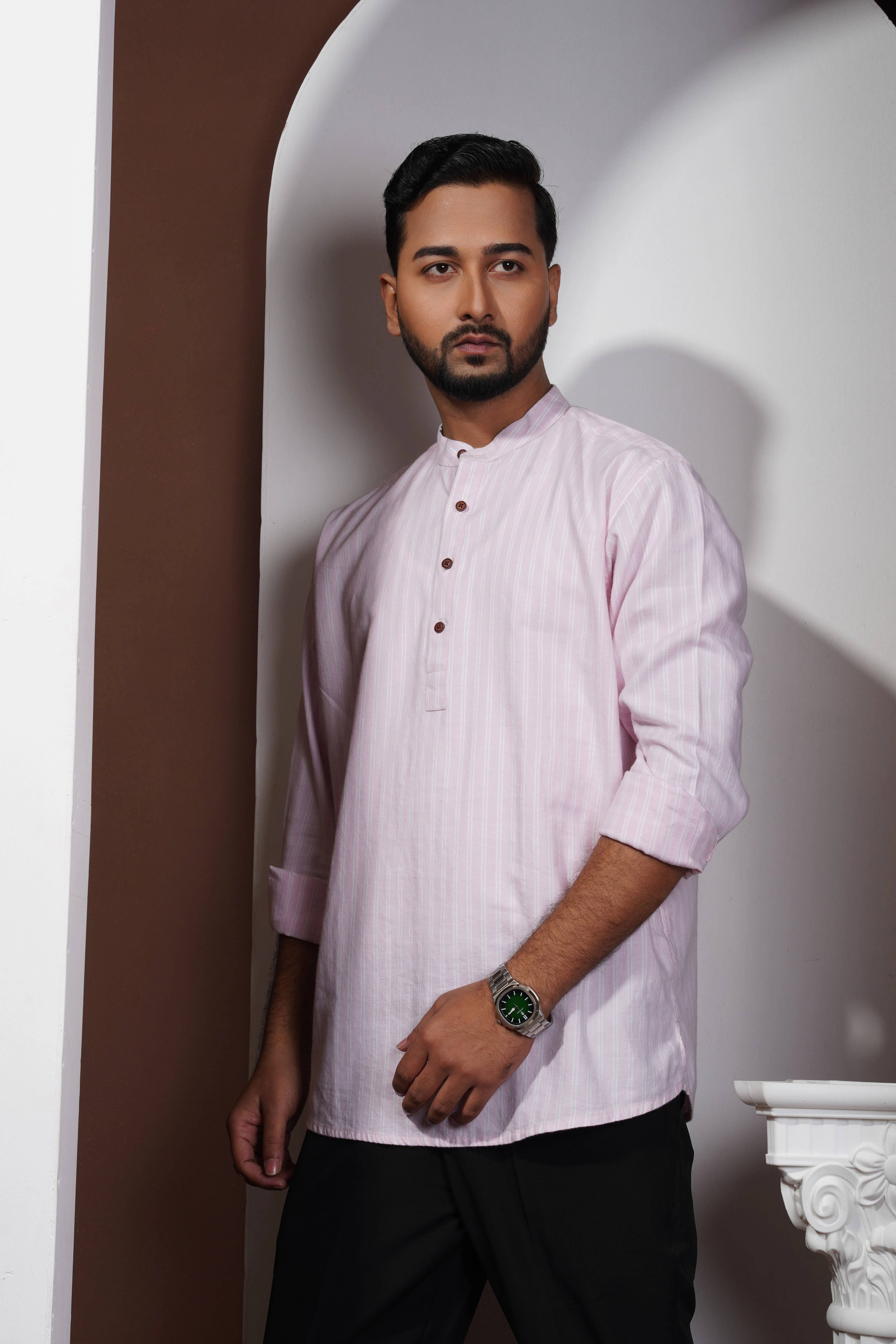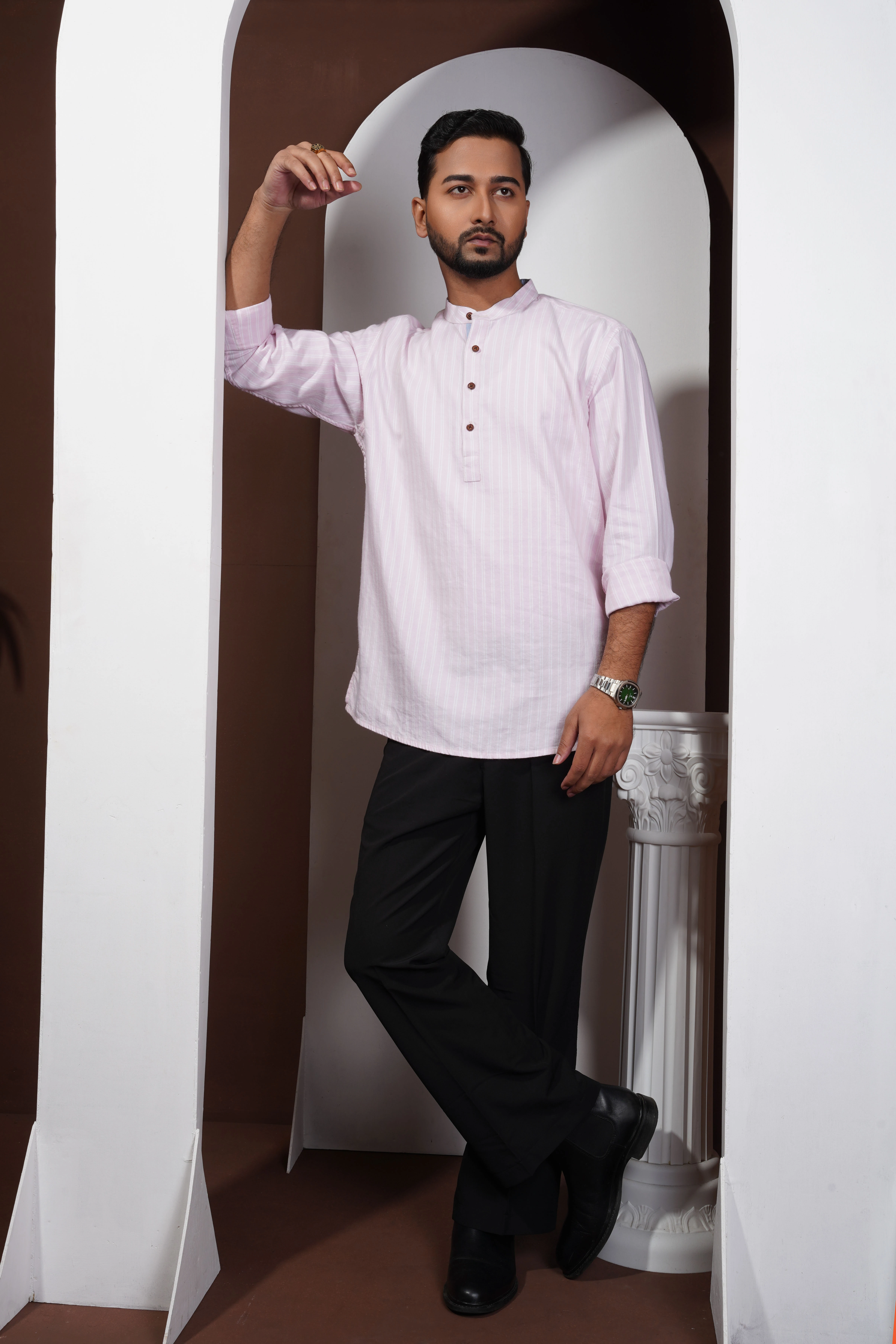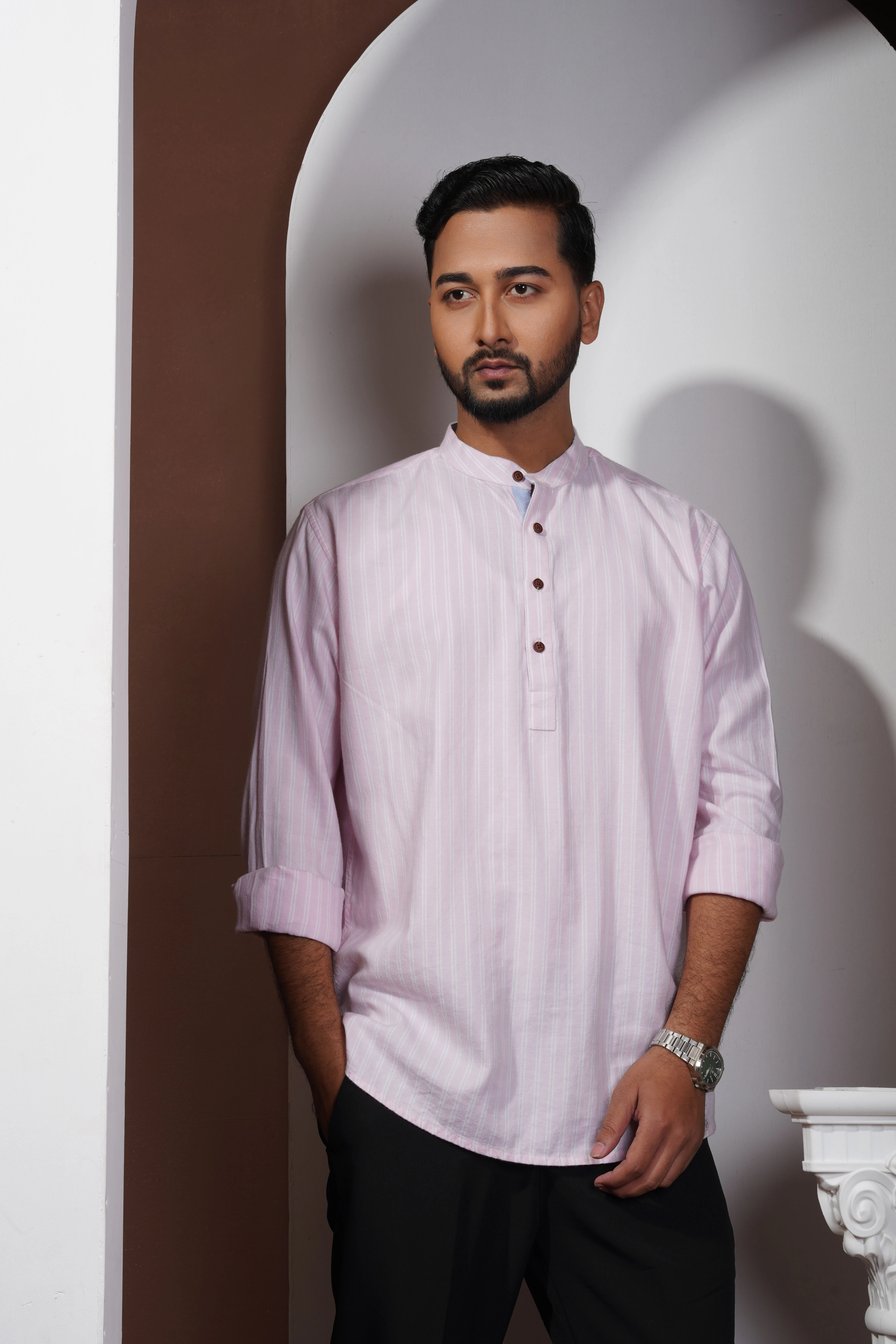 The Light rose pink (striped) Okey Tailor brings a perfect balance of boldness and sophistication. Made from premium cotton fabric, it ensures breathability and comfort for all-day wear. The vibrant mix of blue, yellow, and maroon stripes adds a touch of modern flair to your casual or semi-formal look. Whether you’re heading to a weekend outing or a smart-casual event, this stylish shirt from Okey Tailor is a standout choice for men’s fashion in Bangladesh.