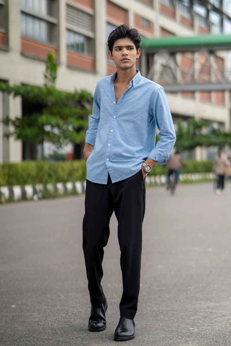 The Light sky Blue Shirt from Okey Tailor brings a perfect balance of boldness and sophistication. Made from premium cotton fabric, it ensures breathability and comfort for all-day wear. The vibrant mix of blue, yellow, and maroon stripes adds a touch of modern flair to your casual or semi-formal look. Whether you’re heading to a weekend outing or a smart-casual event, this stylish shirt from Okey Tailor is a standout choice for men’s fashion in Bangladesh.
