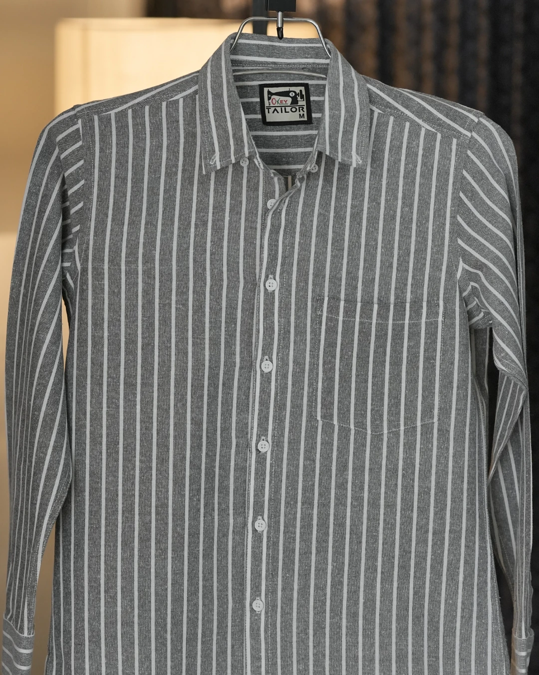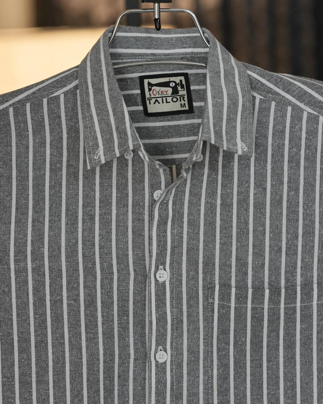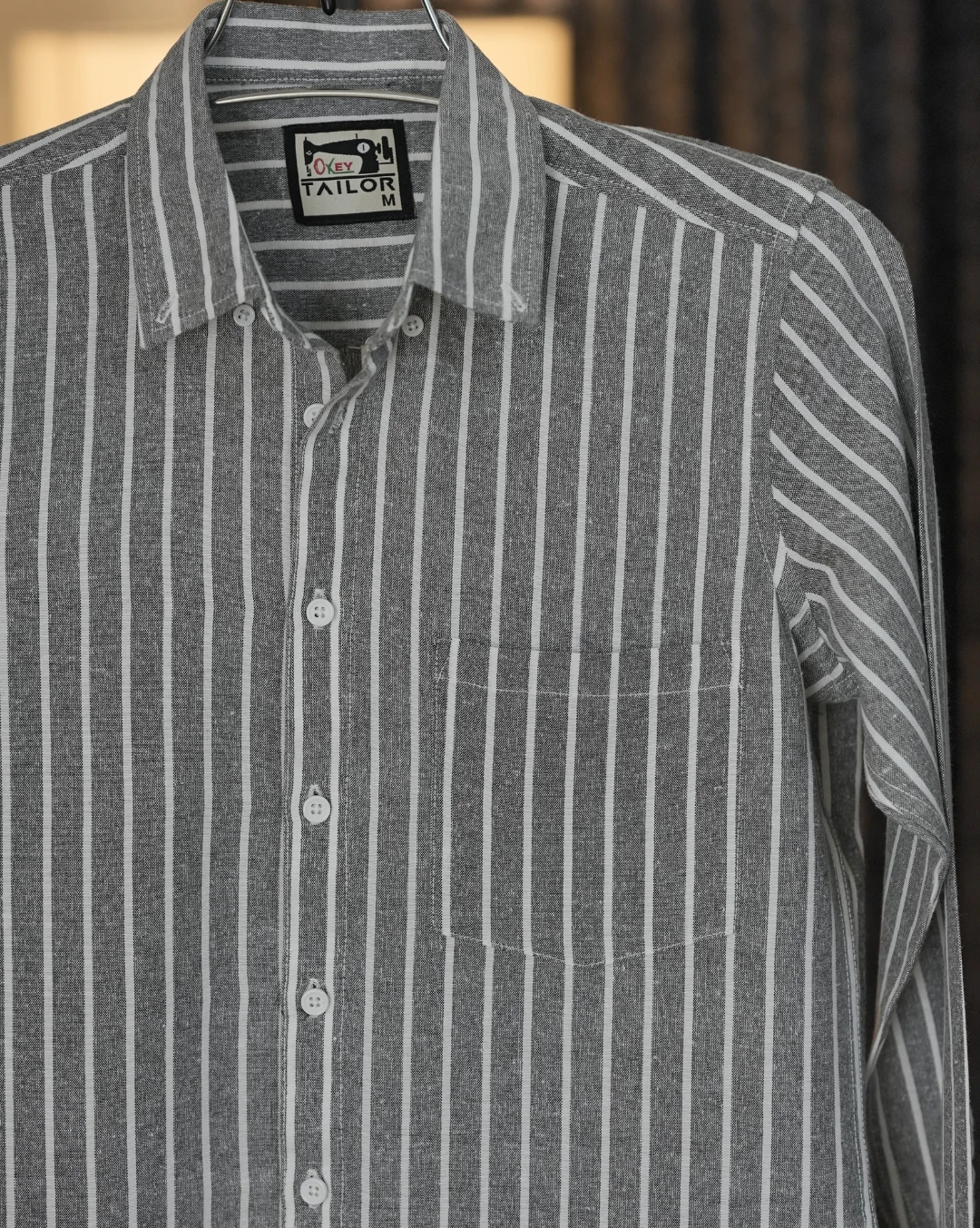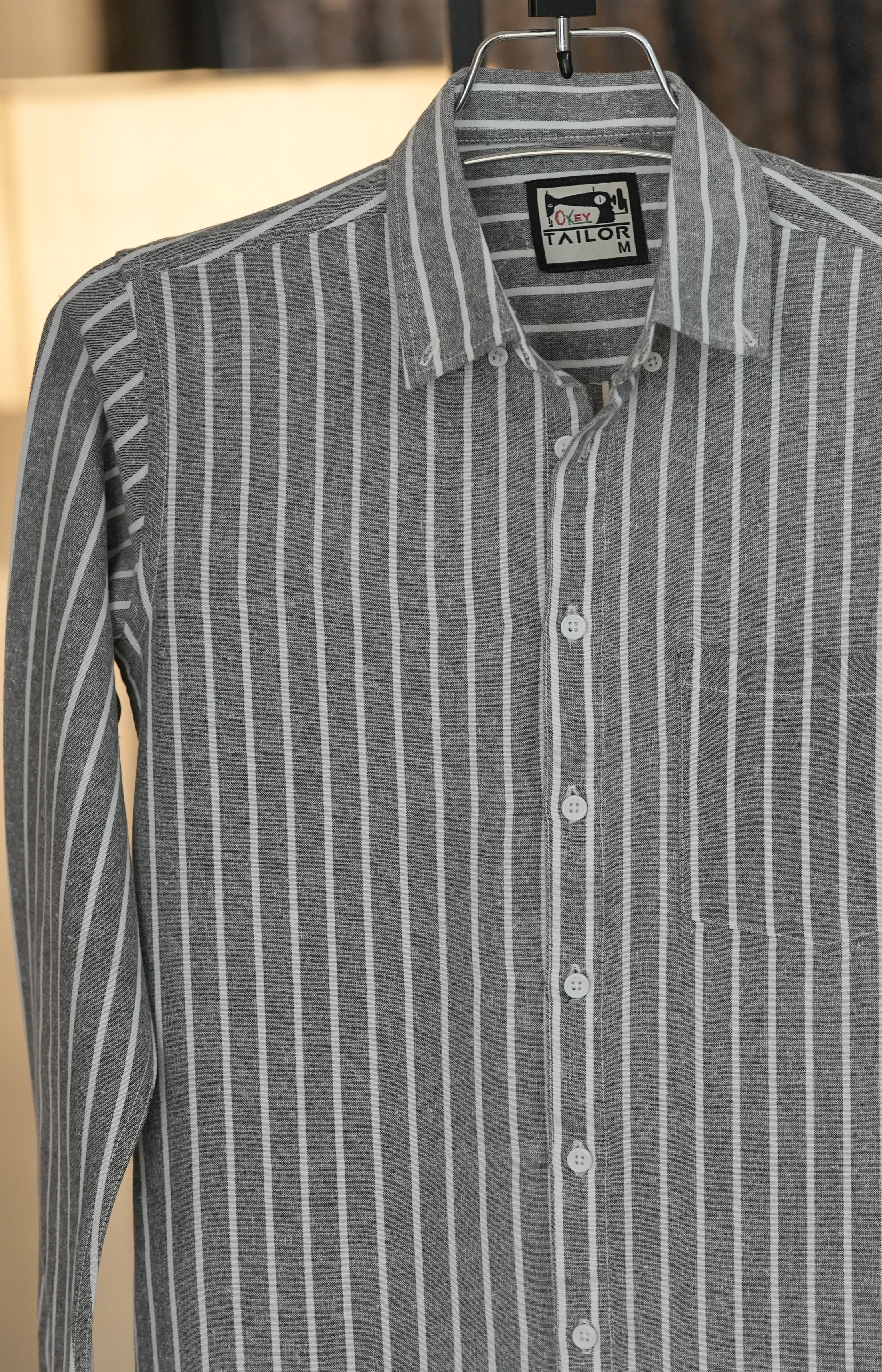 The Medium heather grey with white vertical stripes from Okey Tailor brings a perfect balance of boldness and sophistication. Made from premium cotton fabric, it ensures breathability and comfort for all-day wear. The vibrant mix of blue, yellow, and maroon stripes adds a touch of modern flair to your casual or semi-formal look. Whether you’re heading to a weekend outing or a smart-casual event, this stylish shirt from Okey Tailor is a standout choice for men’s fashion in Bangladesh.