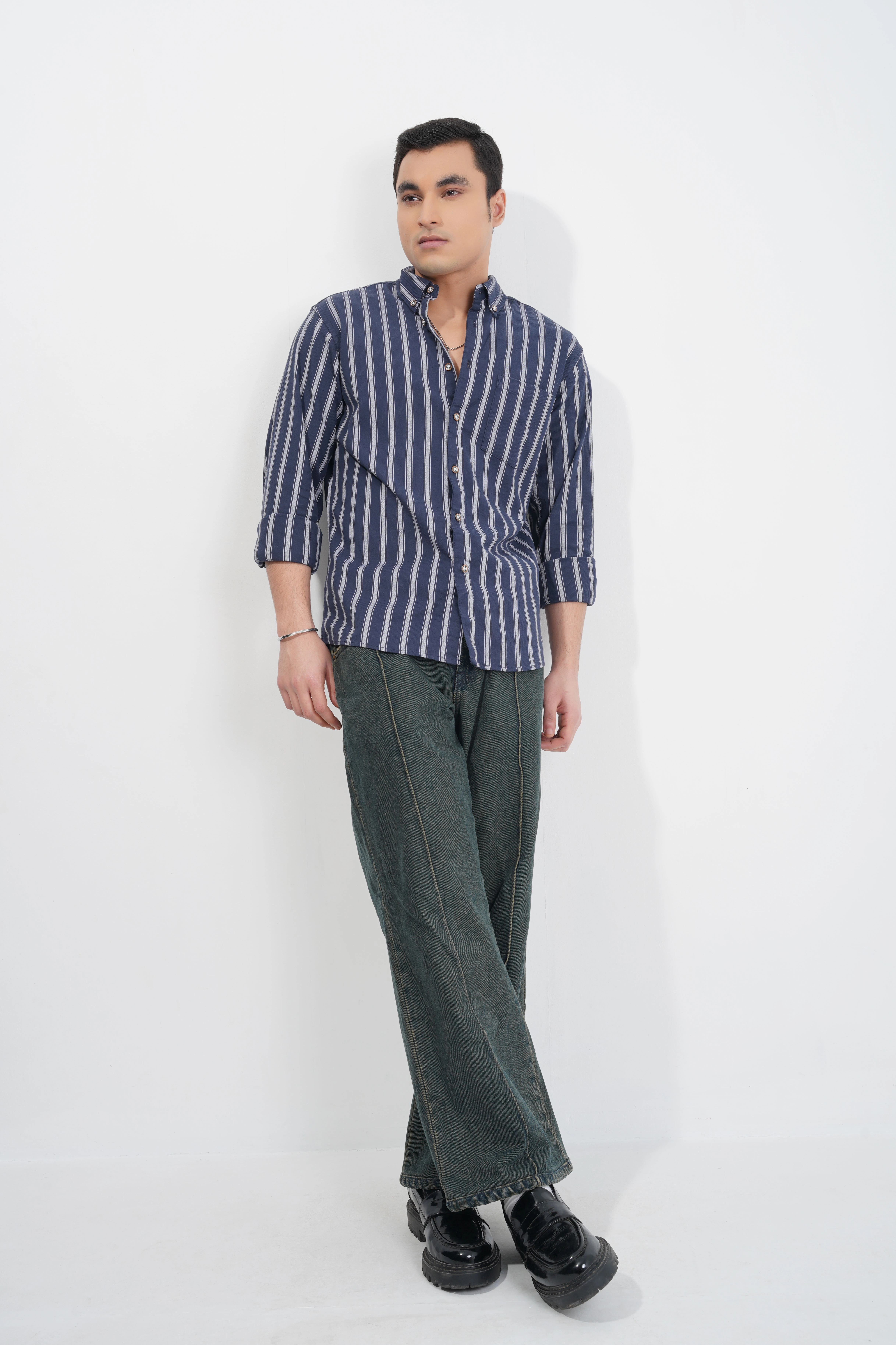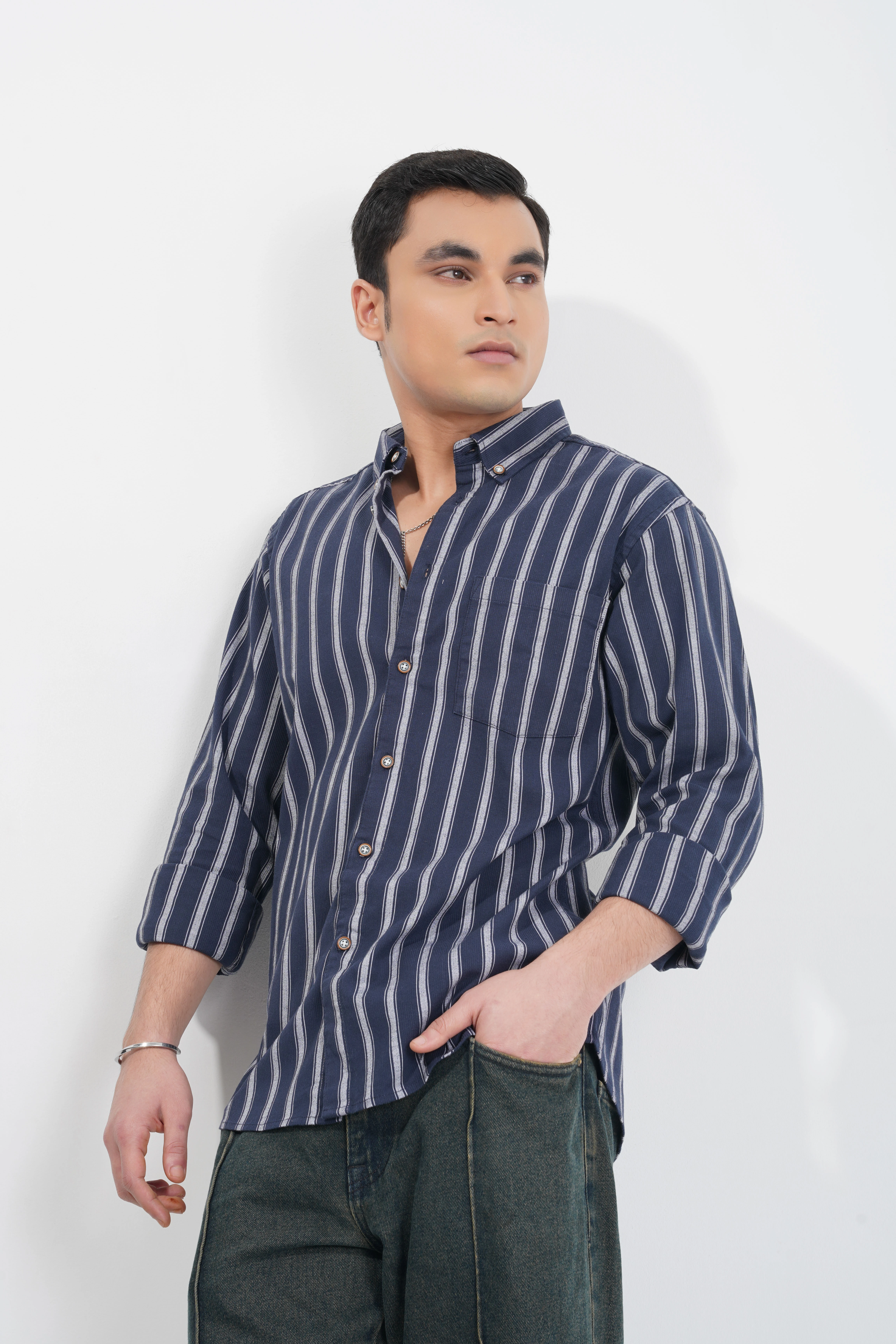 The Navy Blue with White Vertical Stripes Shirt from Okey Tailor brings a perfect balance of boldness and sophistication. Made from premium cotton fabric, it ensures breathability and comfort for all-day wear. The vibrant mix of blue, yellow, and maroon stripes adds a touch of modern flair to your casual or semi-formal look. Whether you’re heading to a weekend outing or a smart-casual event, this stylish shirt from Okey Tailor is a standout choice for men’s fashion in Bangladesh.