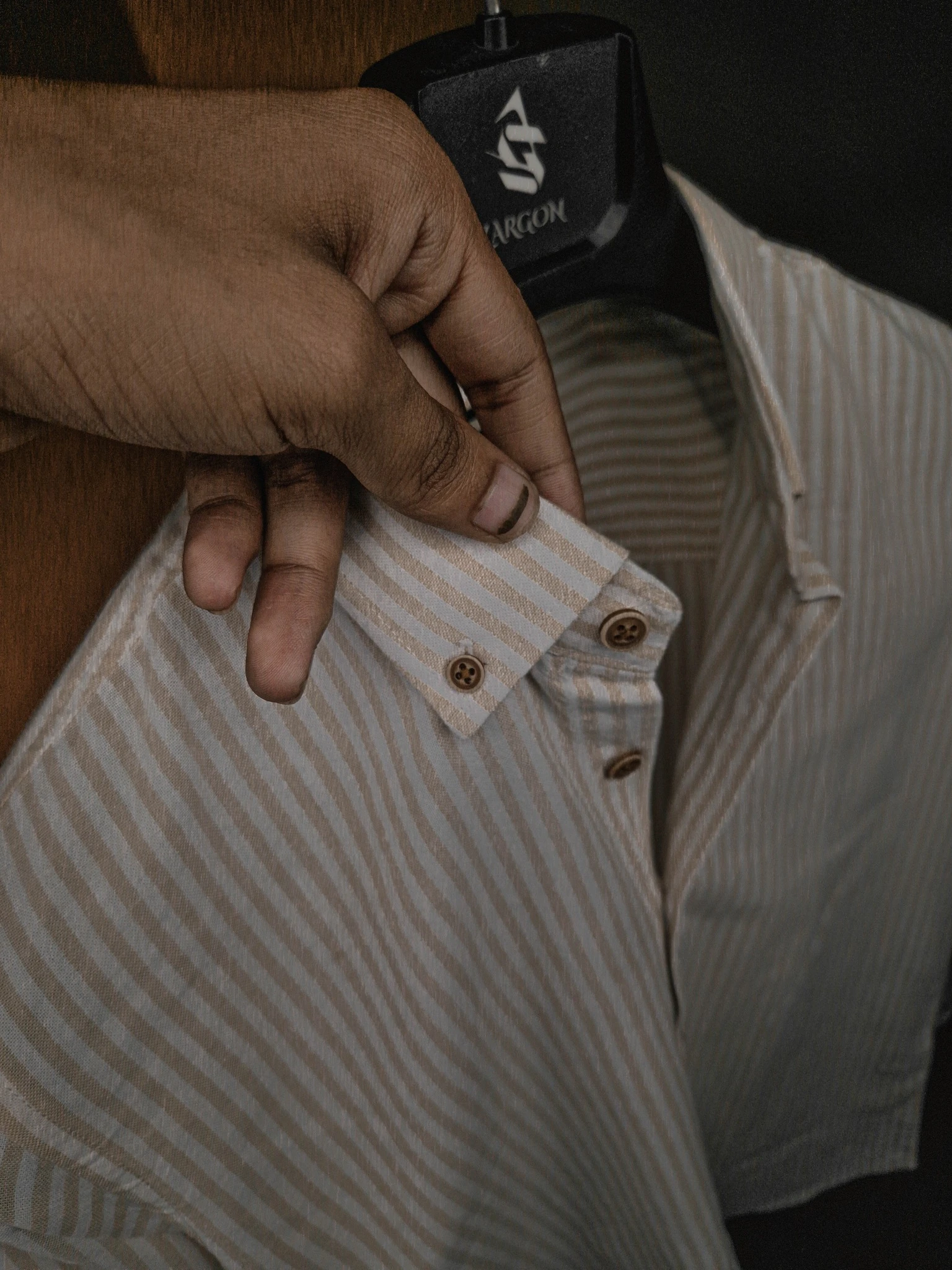 The Off-White & Light Beige Striped Shirt from Okey Tailor brings a perfect balance of boldness and sophistication. Made from premium cotton fabric, it ensures breathability and comfort for all-day wear. The vibrant mix of blue, yellow, and maroon stripes adds a touch of modern flair to your casual or semi-formal look. Whether you’re heading to a weekend outing or a smart-casual event, this stylish shirt from Okey Tailor is a standout choice for men’s fashion in Bangladesh.