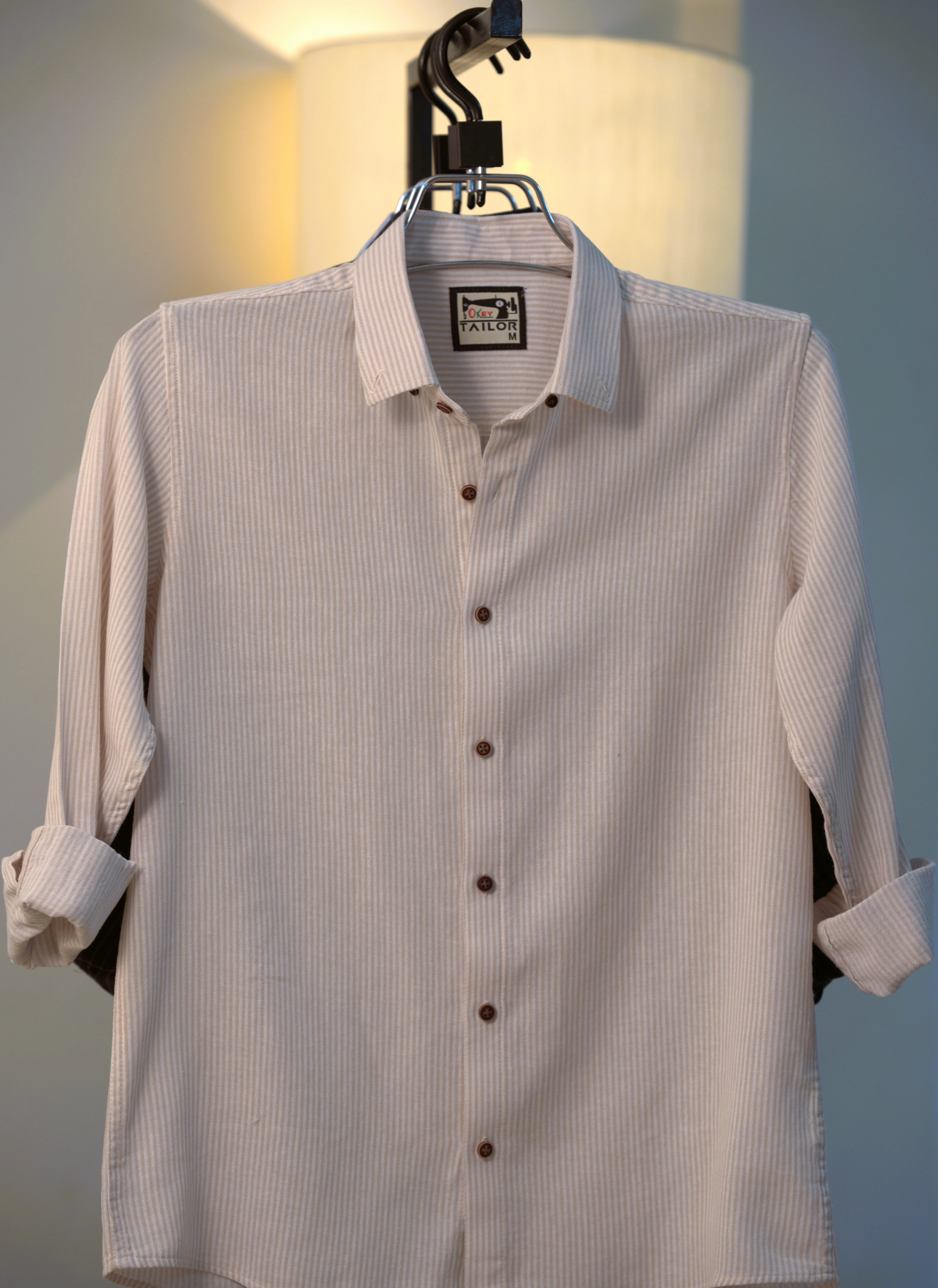The Off-white with light beige stripes Shirt from Okey Tailor brings a perfect balance of boldness and sophistication. Made from premium cotton fabric, it ensures breathability and comfort for all-day wear. The vibrant mix of blue, yellow, and maroon stripes adds a touch of modern flair to your casual or semi-formal look. Whether you’re heading to a weekend outing or a smart-casual event, this stylish shirt from Okey Tailor is a standout choice for men’s fashion in Bangladesh.