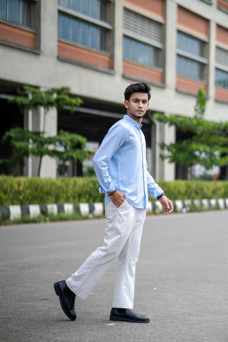 The Sky blue striped casual shirt from Okey Tailor brings a perfect balance of boldness and sophistication. Made from premium cotton fabric, it ensures breathability and comfort for all-day wear. The vibrant mix of blue, yellow, and maroon stripes adds a touch of modern flair to your casual or semi-formal look. Whether you’re heading to a weekend outing or a smart-casual event, this stylish shirt from Okey Tailor is a standout choice for men’s fashion in Bangladesh.