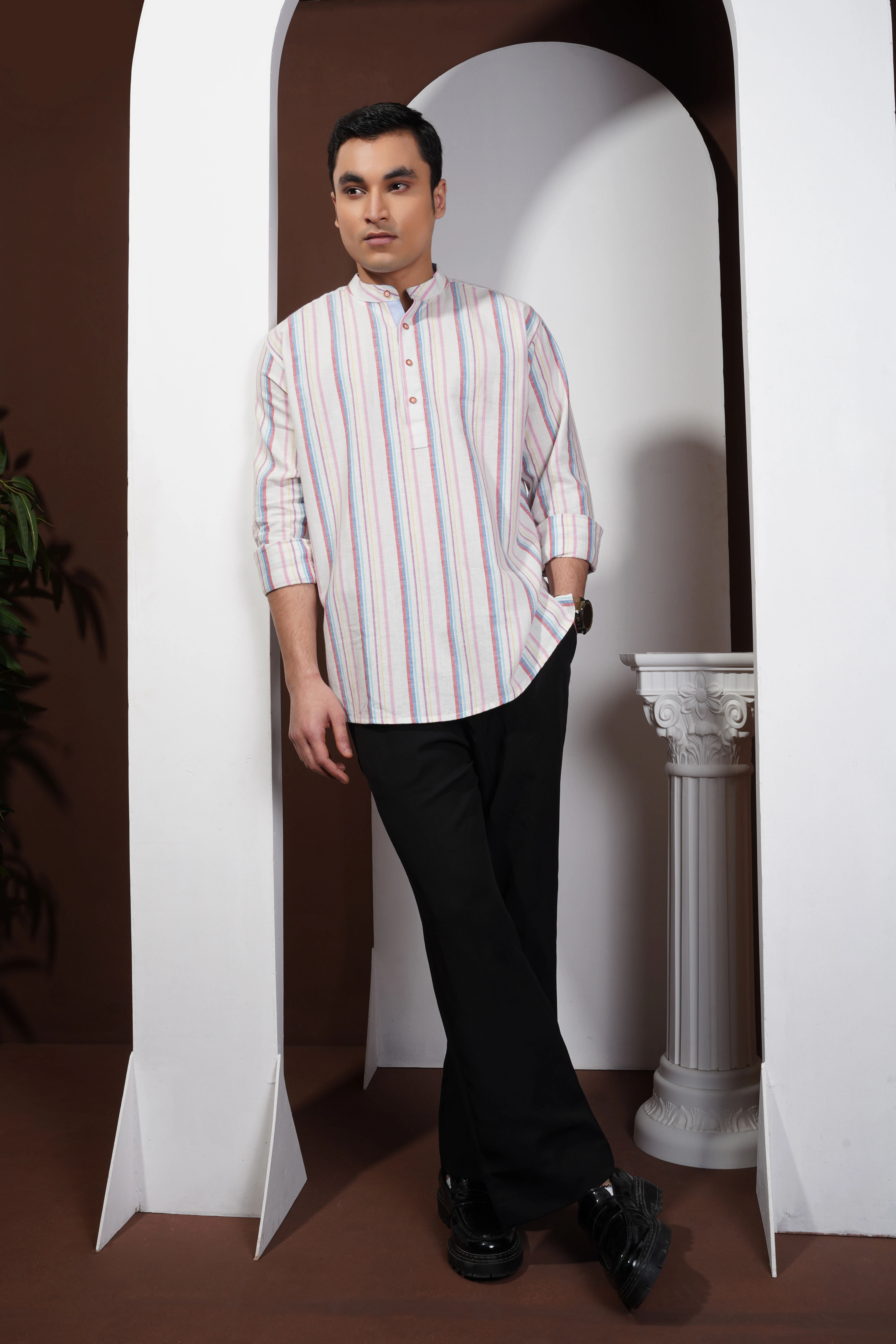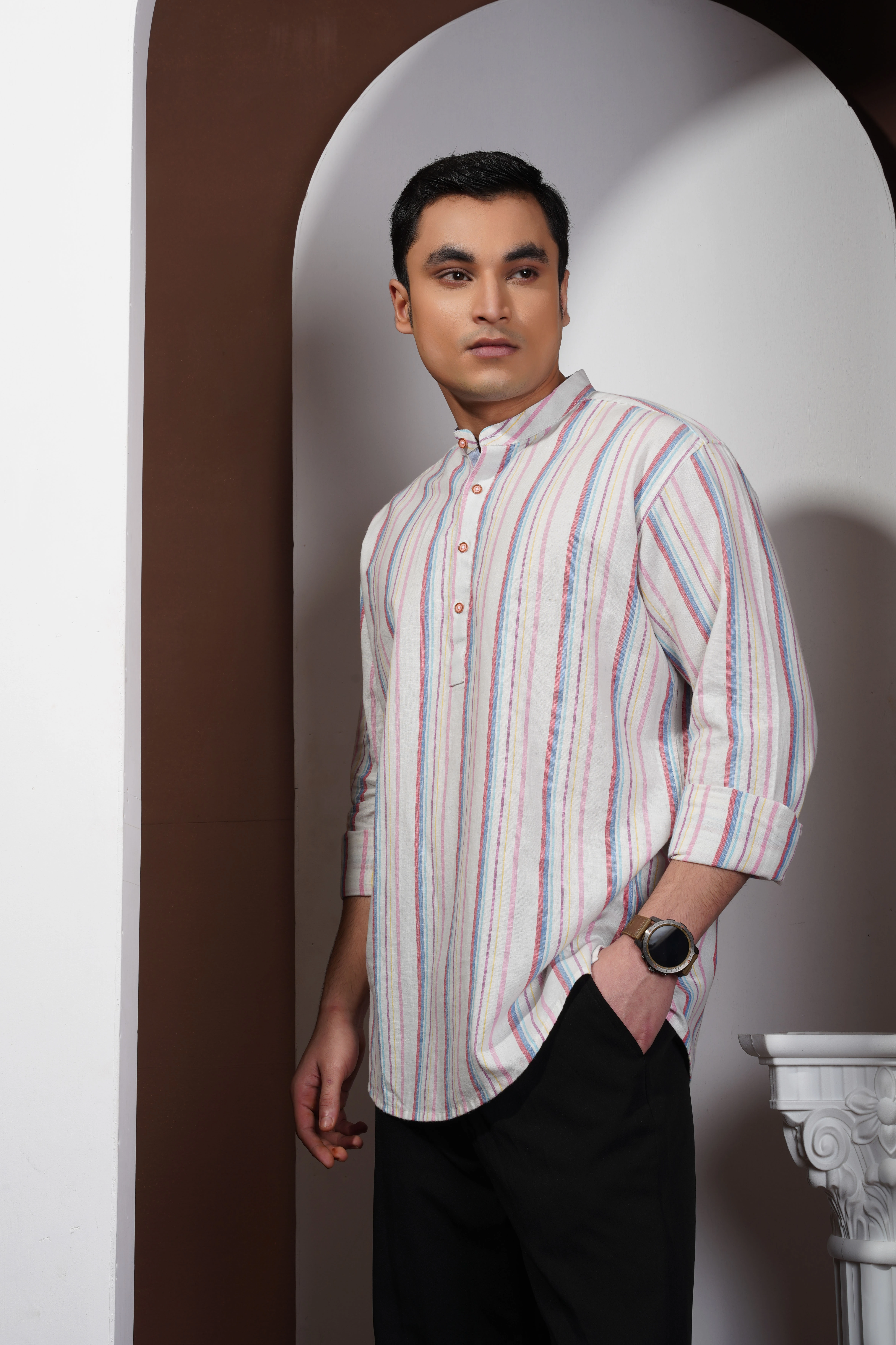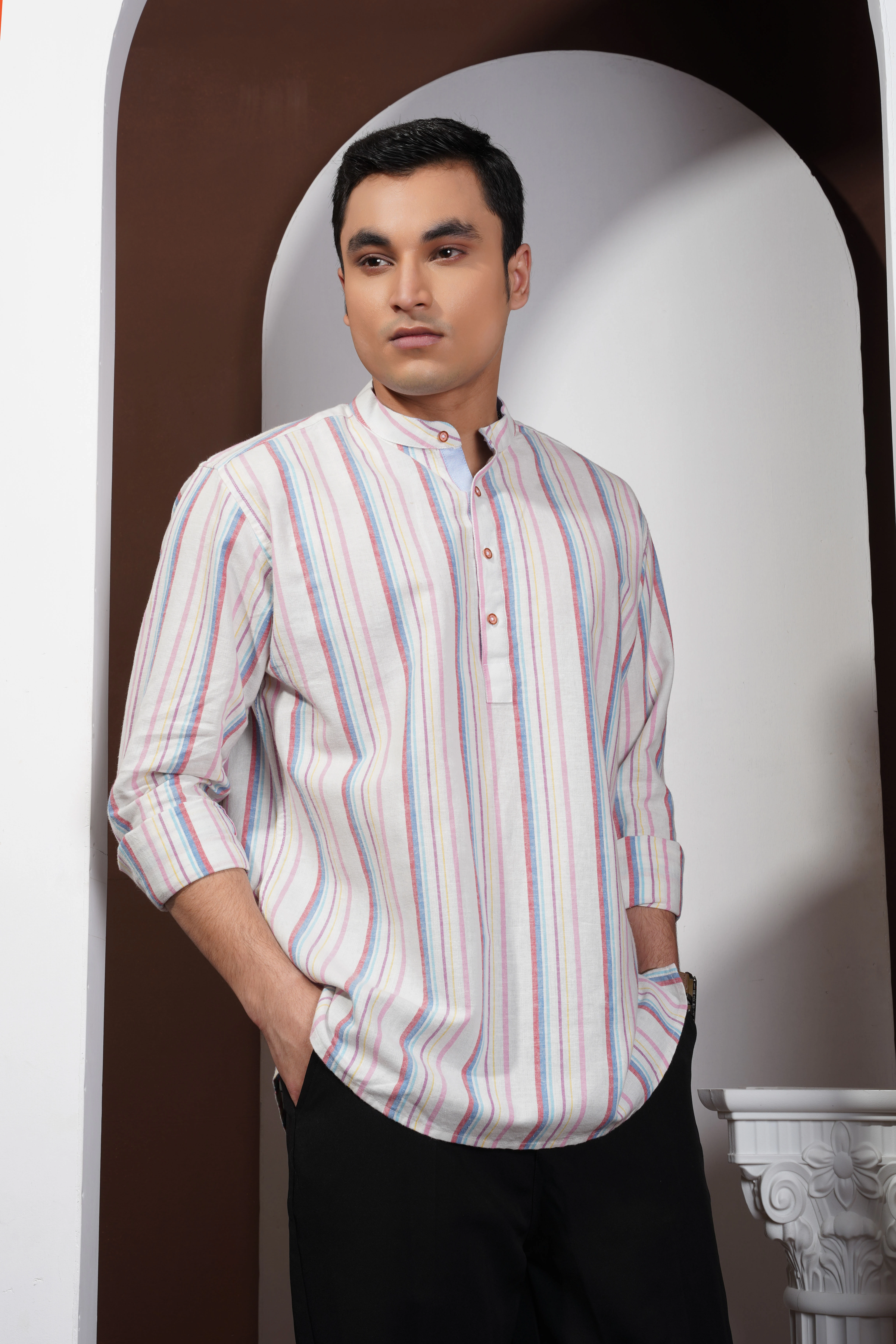 The Blue Multicolor Striped Shirt from Okey Tailor brings a perfect balance of boldness and sophistication. Made from premium cotton fabric, it ensures breathability and comfort for all-day wear. The vibrant mix of blue, yellow, and maroon stripes adds a touch of modern flair to your casual or semi-formal look. Whether you’re heading to a weekend outing or a smart-casual event, this stylish shirt from Okey Tailor is a standout choice for men’s fashion in Bangladesh.